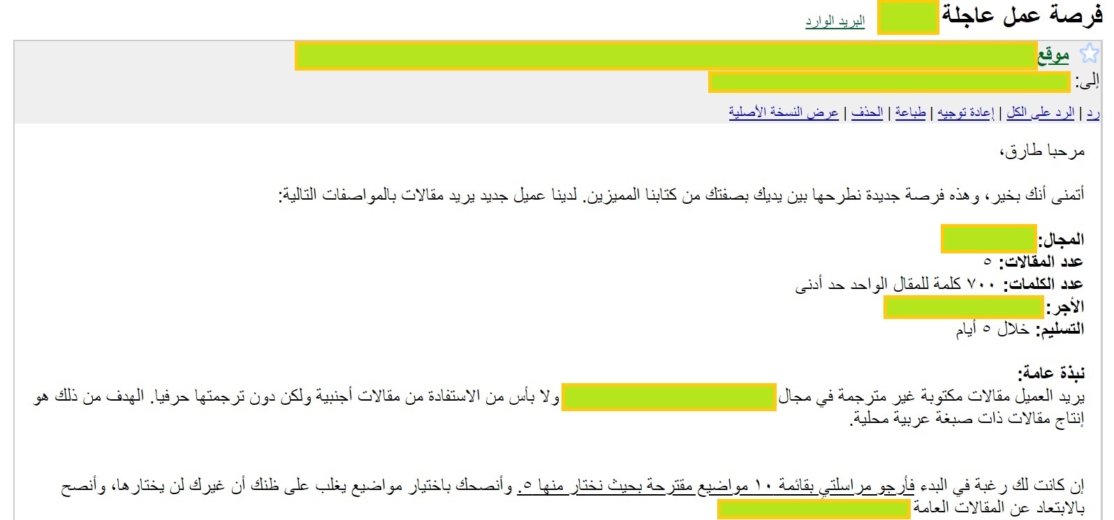 فكثيرًا ما أستيقظ وأتصفح (منجم الفرص = صندوق بريد الوارد) لأجد رسالة كهذه!